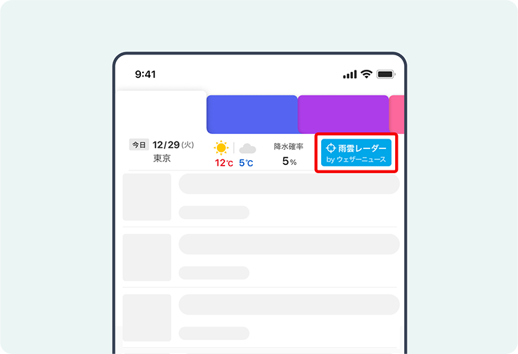 画面右上の「雨雲レーダー」を押す