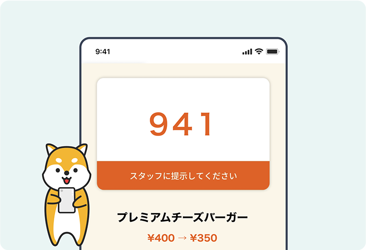 表示された画面をお店で提示してご利用いただけます