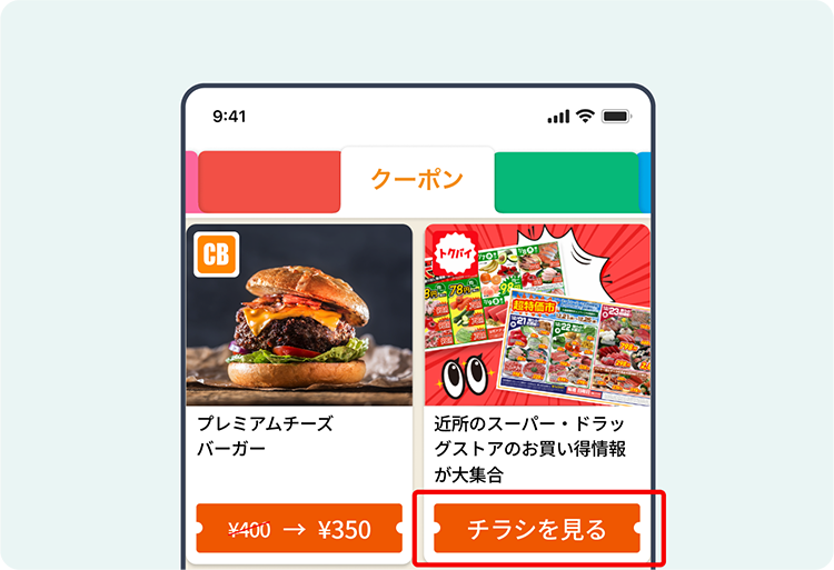 ファストフードやドラッグストアをはじめとしたお得なクーポンを多数配信しています。